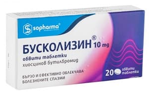 БУСКОПАН таблeтки 10 мг * 20 ЛИСТОВКА: ИНФОРМАЦИЯ ЗА ПАЦИЕНТА БУСКОПАН 10 mg обвити таблетки BUSCOPAN 10 mg coated tablets Бутилскополамин бромид (butylscopolamine bromide) Прочетете внимателно цялата листовка, преди да започнете да използвате това лекарство, тъй като тя съдържа важна за Вас информация .