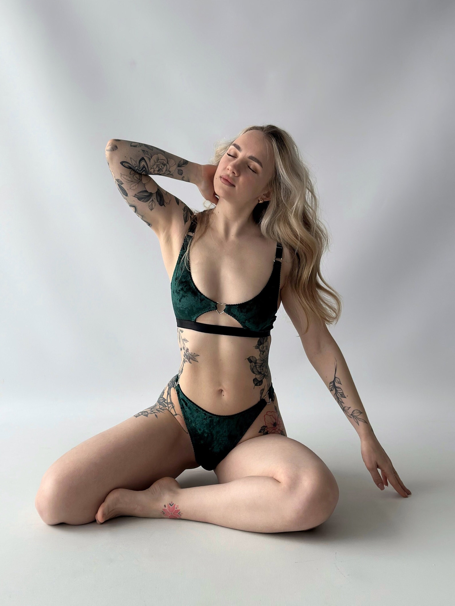 Busty Girl In Green Lingerie 140 photos