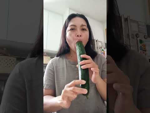 Busty brunette does cucumber show