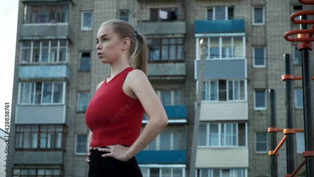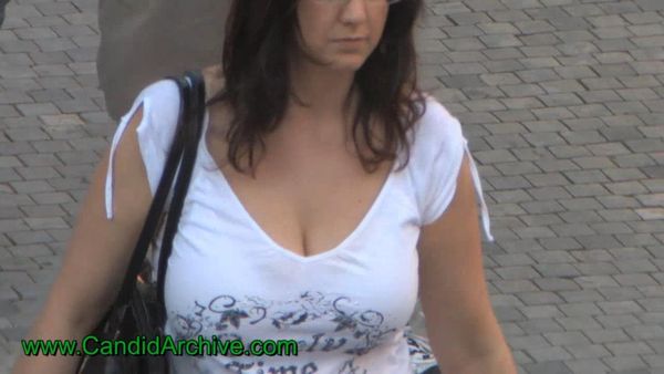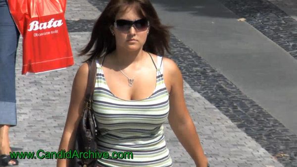 Busty girl walking