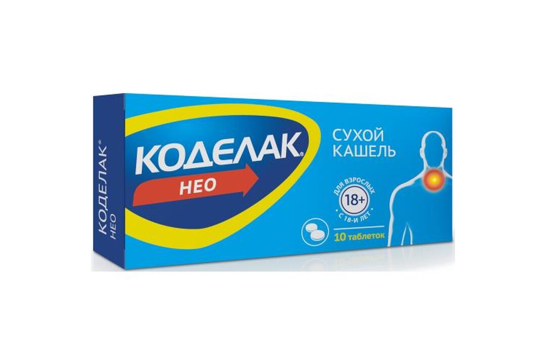 Показания к применению Коделак Нео таблетки 50мг Сухой кашель любой этиологии (при «простудных» заболеваниях, гриппе, коклюше и других состояниях) . Для подавления кашля в предоперационном и послеоперационном периоде, при хирургических вмешательствах и бронхоскопии . Способ применения и дозировка Коделак Нео таблетки 50мг Внутрь .