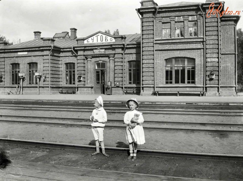 Станция Бутово появилась примерно в 1870-е годы по просьбе местных дачников . На фотографии мы также видим маленьких местных бутовских дачников - Шуру и Киру Аллендорф .