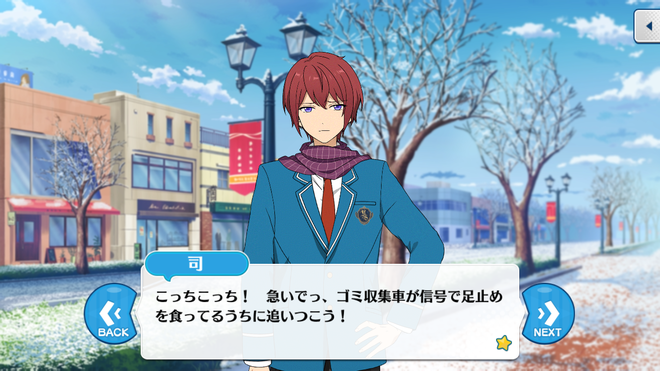 Цукаса: Да. Я рад, что Юки-семпай...…… то-есть я, хорош в сборе информации. Что бы ни случилось, я смогу найти решение - мне придётся извлечь из этого урок.