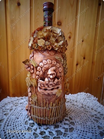 Хочу показать свои новые работы . Эта бытылочка декорирована соленым тестом . Сделала соленое тесто (мука и мелкая соль в одинаковой пропорции), обмазала бутылочку ПВА . . .