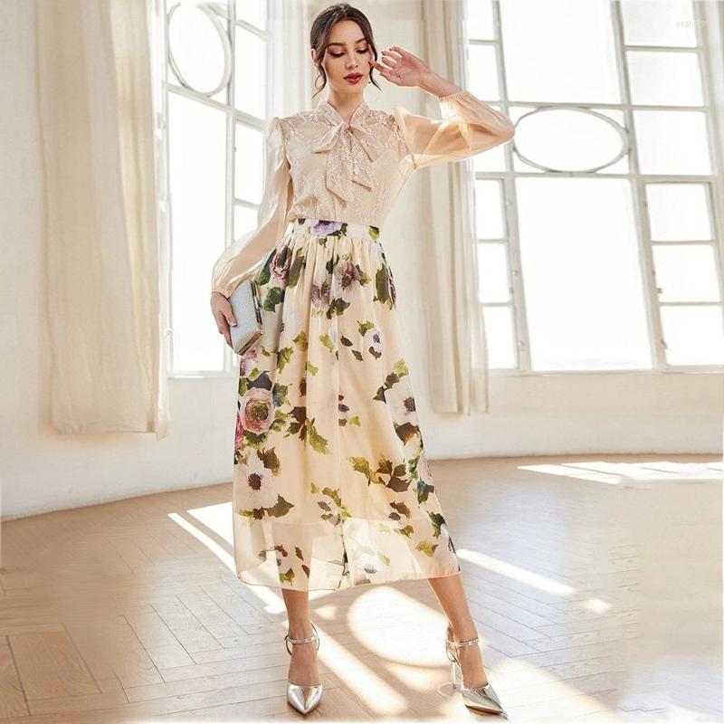 Introducing the >Casual Dresses Women Elegant Maxi 202 Spring Autumn Bow Long Sleeve Mesh Pattern Print Set Turkey Evening Party Robe Vestido< with the best price - only for $39