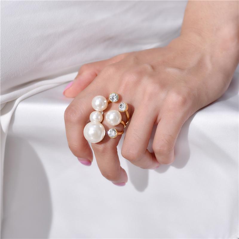 Introducing the >Cluster Rings FFLACELL 2021 Korean Exaggerated Luxury Gold Big Pearl Zircon Crystal Adjustable Opening Ring For Women Girl Jewelry< with the best price - only for $25