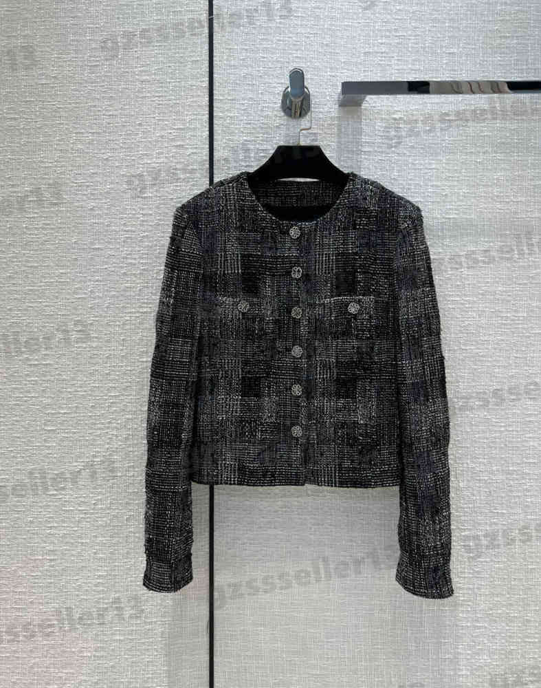 Buy now Designer Womens Jacket Ch..l Silk Jacquard Camellia Lining Jackets Classic Style Tweed Fabric Check Crewneck Designer Jacket Luxury Womens Clothing 0912 for $163 right now with delivery
