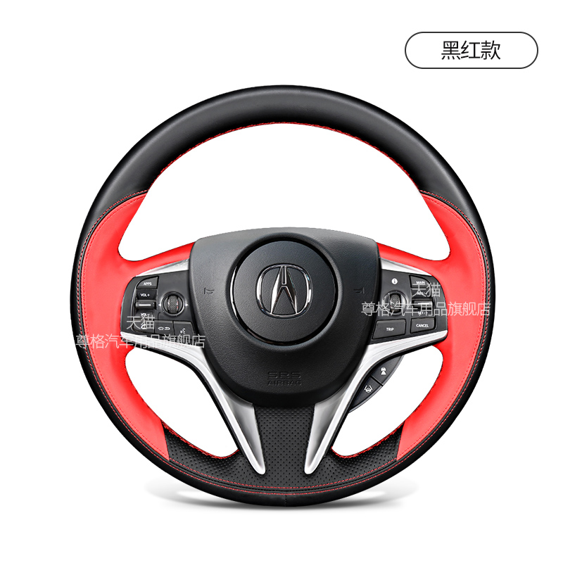 Buy now For Acura CDX RDX TLX-L DIY Steering Wheel Cover Black Red Leather Hand Sewn Handle Cover for $39 right now with delivery
