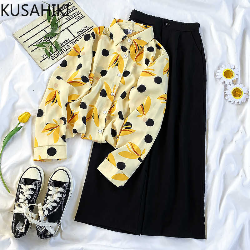 Introducing the >Hit Color Floral Chiffon Blouse Shirt + High Waist Causal Wide Leg Pants Spring Korean Two Pieces Sets 6F448 210603< with the best price - only for $29