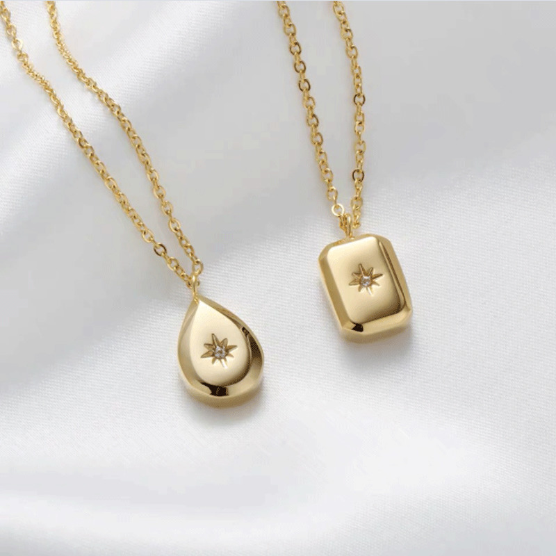 Introducing the >Necklace Three-dimensional Water Drop Octagonal Star Square Brick Steel Clavicle Chain Plated Gold Color< with the best price - only for $37