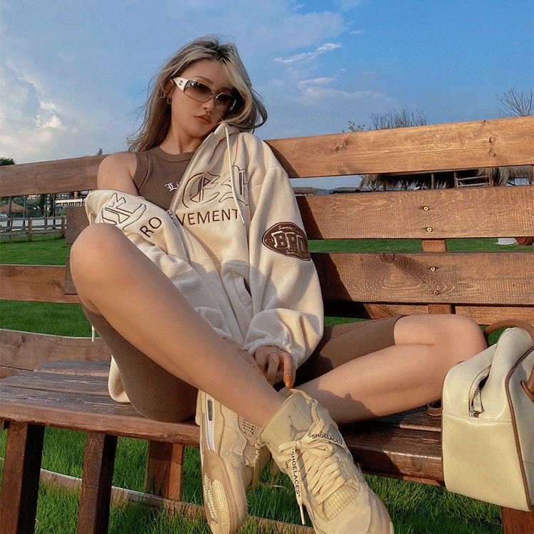 Introducing the >Oversize Vintage Letter Fleece Sping Autumn Hoodie Zip up Women's Hooded Autumn Plush Thickened Sweatshirts For Women< with the best price - only for $30