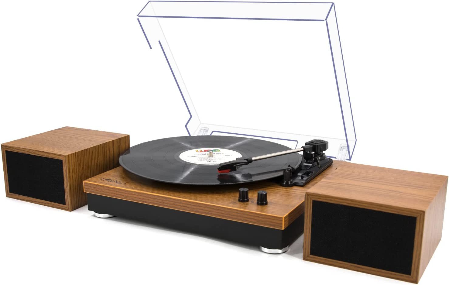 Buy now Record Player, Bluetooth Vinyl Turntable with Stereo Bookshelf Speakers, 3-Speed Belt-Drive Turntable for Vinyl Albums with Auto Off and Wir for $152 right now with delivery