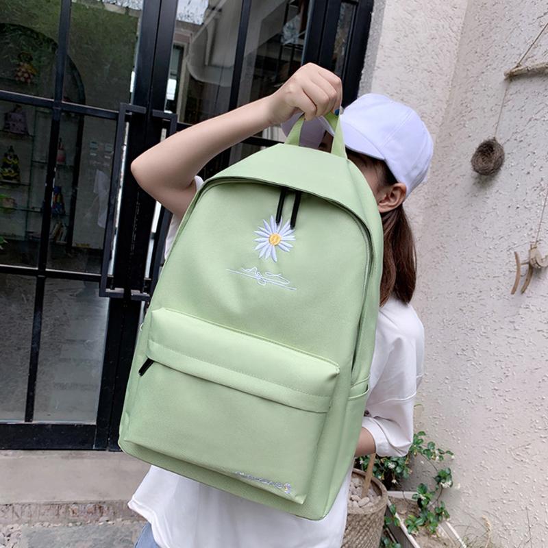 Buy now School Bags Causal Girl Canvas Backpack Green Daisy Embroidery Pattern Design Large Capacity Bag Travel Student for $36 right now with delivery