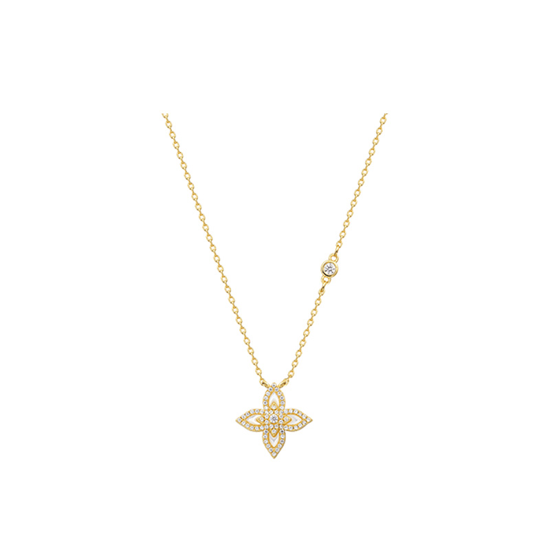 High-Quality Material: Made of solid S925 pure silver, plated with 18k genuine gold, for long-lasting durability and resistance to oxidation. Authentic Design: Inlaid with 62 imported Austrian zircons, giving the pendant a luxurious and elegant look. Hottest Trend: Four leaf clover necklace is currently one of the hottest fashion trends, making this pendant a must-have item for fashionable women. Unique Style: Fritillaria necklace design adds a touch of sophistication, making it a perfect accessory for any occasion. Perfect Gift: This pendant makes for an ideal gift for any special woman in your life as it combines quality, design, and style all in one..syi