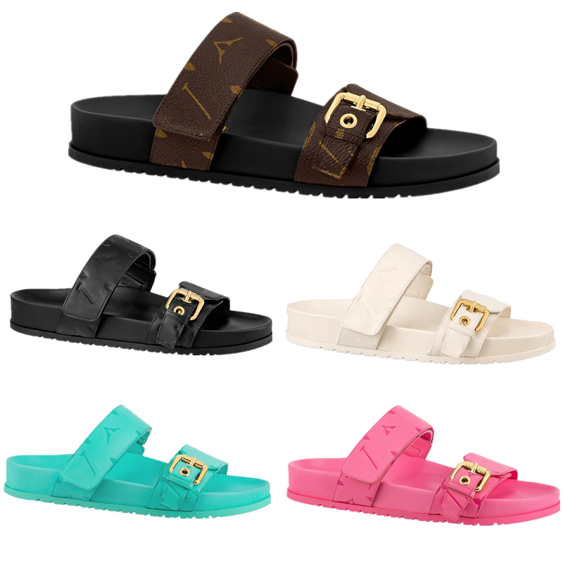 Introducing the >Slide Women BOM DIA COMFORT Flat Sandals Designer Luxury High Quality Lacquer Canvas Leather Aging Print Clasp Monograms Slippers< with the best price - only for $74