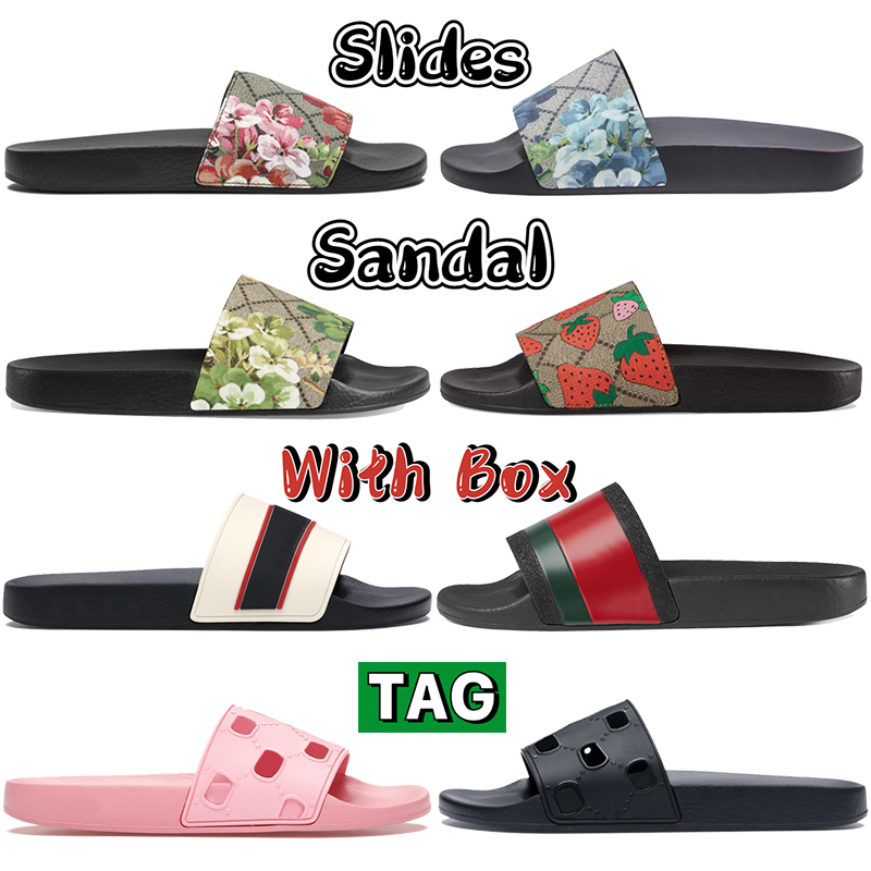 Introducing the >With Box slides sandals mens flats designer slippers black canvas blue floral strawberry print web rubber slide beach sandal womens summer flip flops slipper shoes< with the best price - only for $26