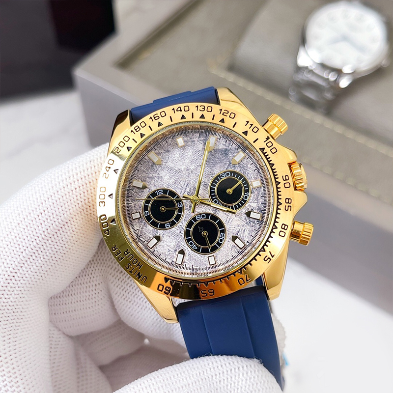Buy now fashion mens gold watch quartz movement automatic Wristwatches timer multi-functional designer watch rubber strap folding clasp exquisite classic Luxury watches for $48 right now with delivery