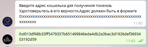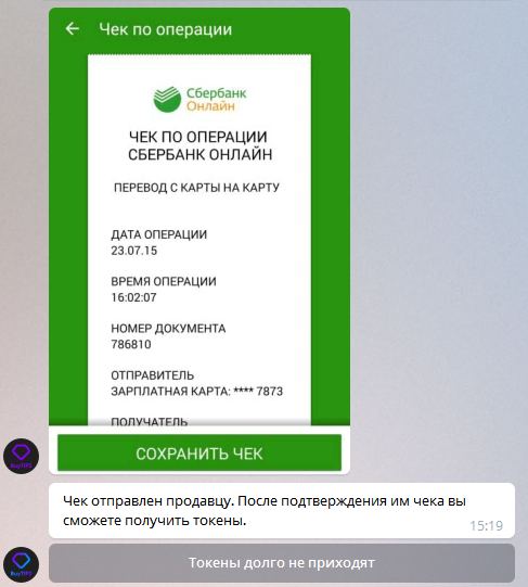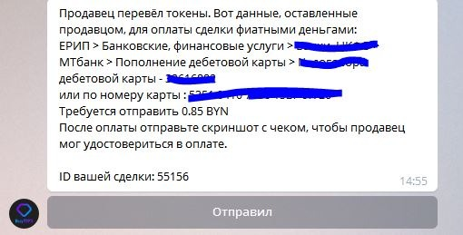 после того как продавец переведет токены в бот вам придет сообщение с реквизитами