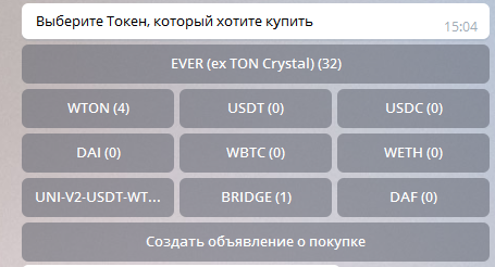 Ввыберите токены которые вы хотите купить (в скобках указано количество объявлений)