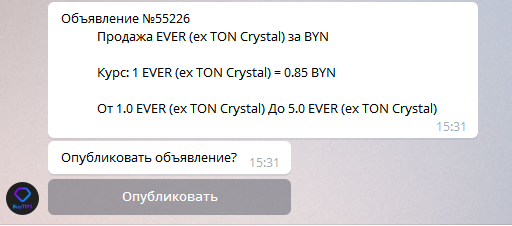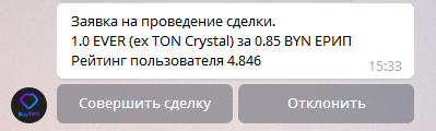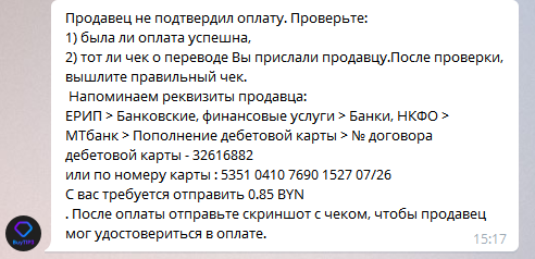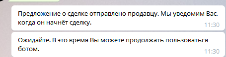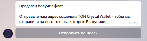 Как только Продавец подтвердит получения фиата бот пришлет следующее