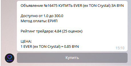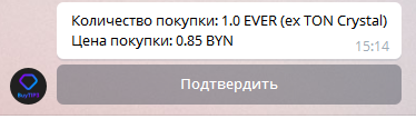 Чтобы купить токены Eversсale (TON Crystal) или другие токены следуйте простой инструкции, которую мы написали не смотря на то, что бот интуитивно прост в работе.