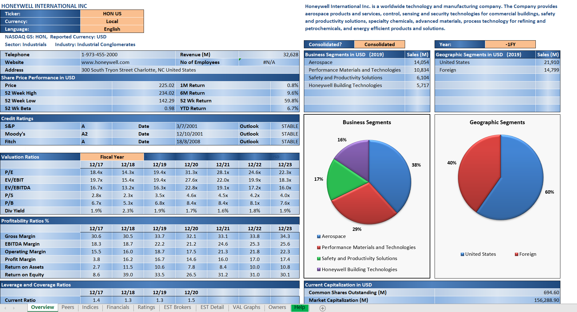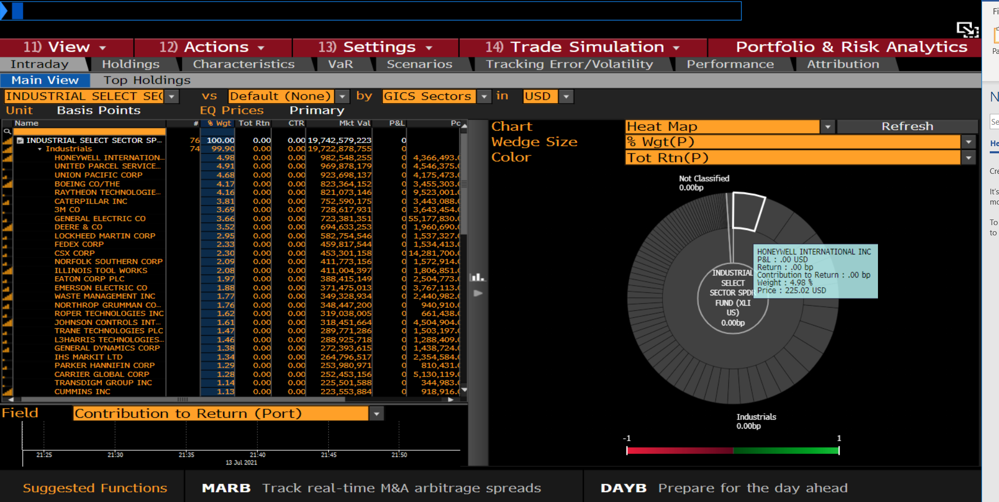 Каждое из этих имен можно исследовать отдельно, прогоняя через количественные и качественные фильтры, настроенные в соответствии со своими представлениями о прекрасном. Обычно это делается в экселе, где у большинства аналитиков есть свои темплейты для оценки компаний и активов. Альтернатива – библиотека эксель-черновиков от блумберга, пример которой с топ-позицией фонда XLI показан ниже: