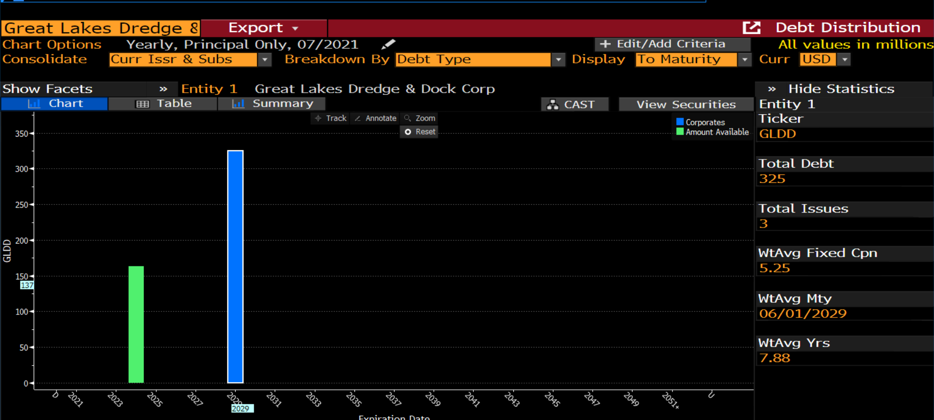 Предположим, что после этих изысканий, наше внимание привлекла одна из компаний из того самого первоначального скринера - Great Lakes Dredge & Docks (GLDD; компания взята наобум). И не слишком известная, и фундментал, допустим, хорош, и относительно недорогая, и лоббисты работают, и госконтракты выиграны на много лет безбедного существования вперед, и немало еще обещают быть выигранными исходя из бизнеса компании и нашего понимания вероятных расходных планов, которые сейчас обсуждают в Конгрессе.