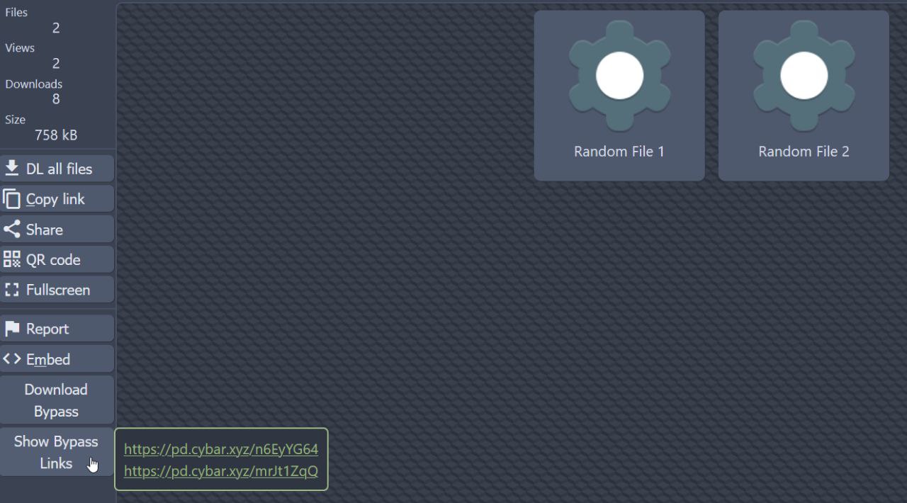 Note The "Show Bypass Links" button is kinda buggy for now, especially when using it in a pixeldrain folder. It works best when you aren't viewing a specific file in the folder. If you are, click this button and refresh the page