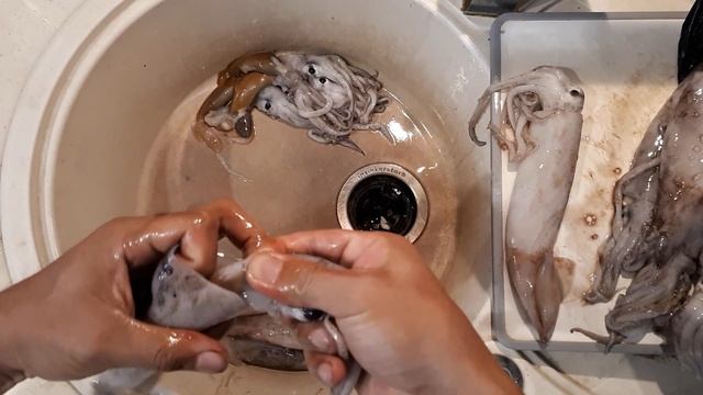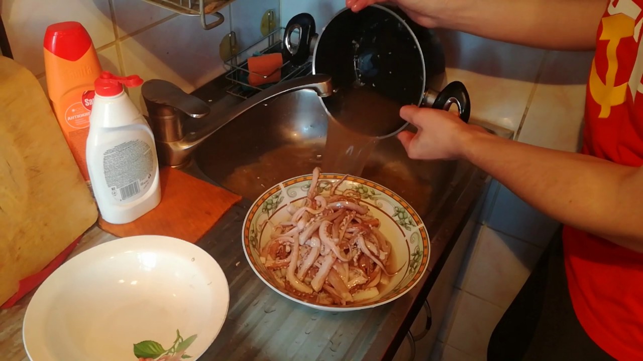 Быстро чистить кальмар