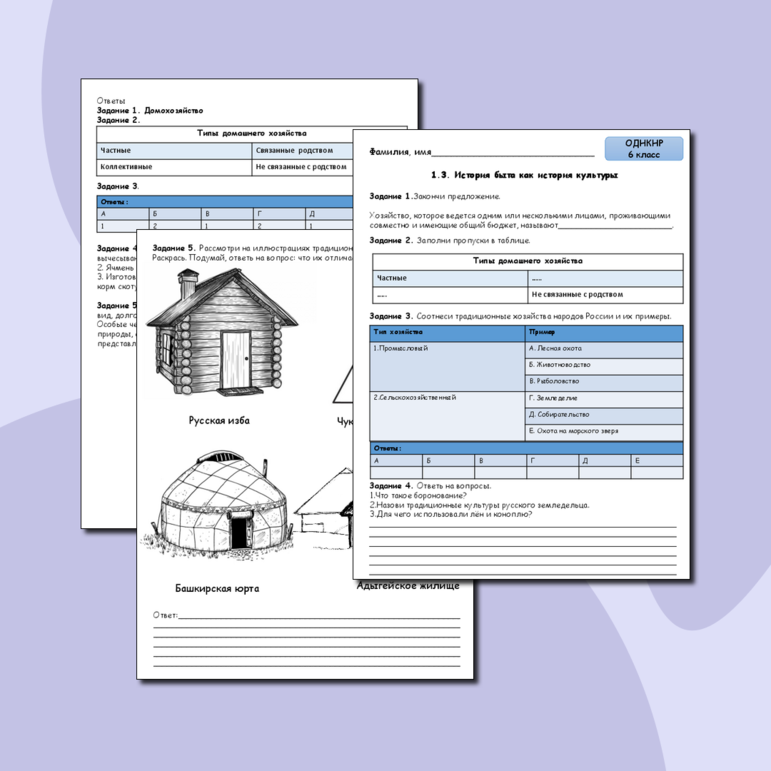 Быт семьи однкнр 6 класс