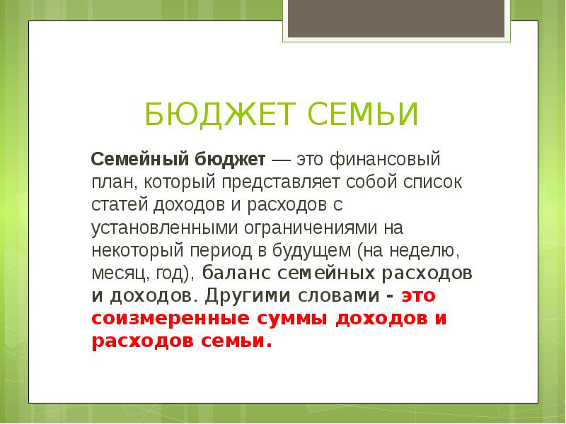 Бюджет бедной семьи