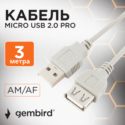 Câble d'extension Gembird USB - USB (CC-USB2-AMAF-10), 3 m, gris