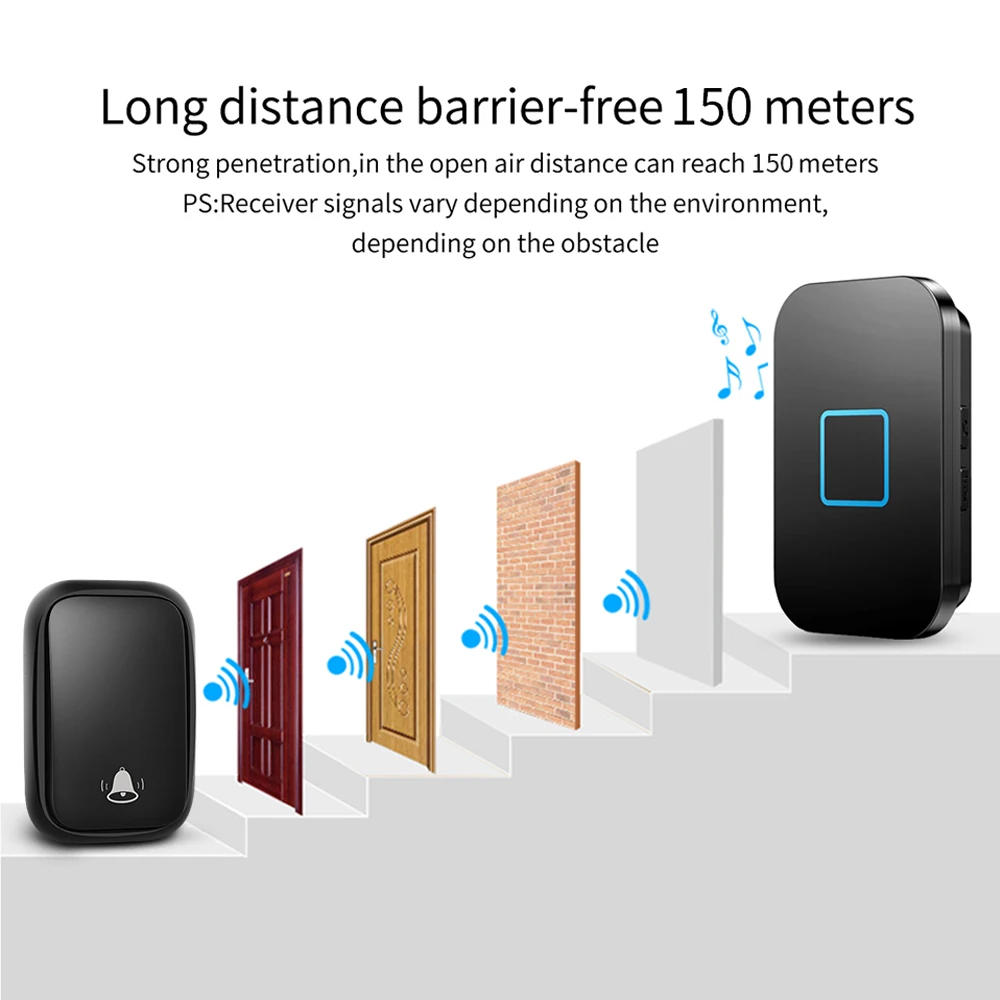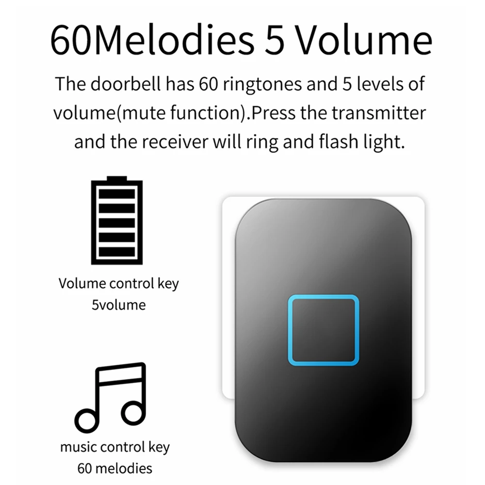 «CACAZI 60 ringtones No battery Required Button Wireless Self-powered Doorbell Waterproof US EU UK AU Plug Home Call Ring Bell» по лучшей цене на рынке! Всего за 14$ (1330рублей)