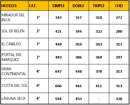 - PRECIOS POR PERSONA // EXPRESADOS EN DÓLARES AMERICANOS