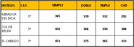 - 03 Noches de alojamiento + 03 desayunos