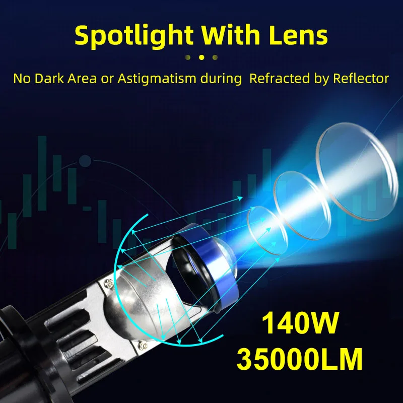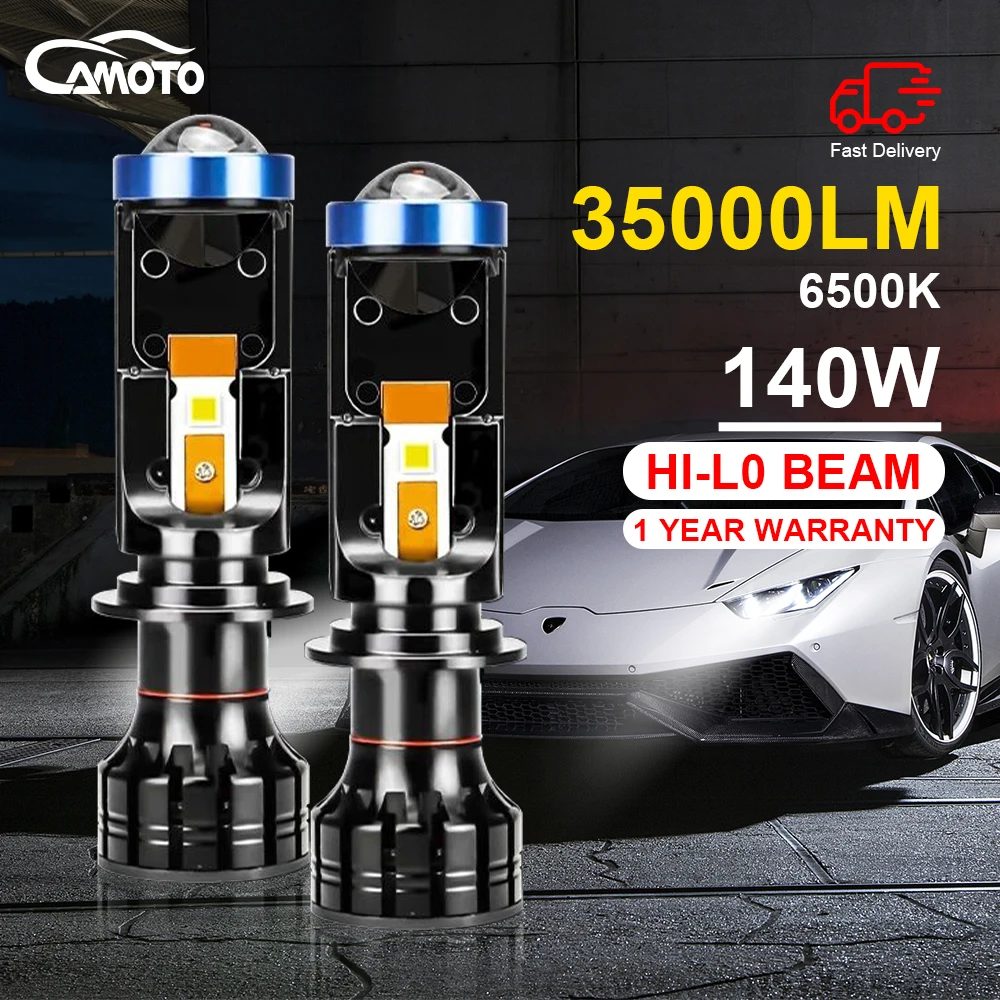 CAMOTO Left-hand Drive H4 H7 LED Headlight Bulbs Mini Projector Lens Canbus 35000LM 140W High/Low LED Headlamp Conversion Kit - Купить с бесплатной доставкой
