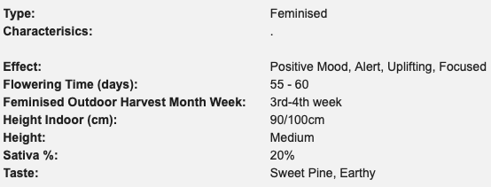 Схрещування легендарного сорту Indica CRITICAL KUSH ™ зі штамом, посиленим CBD Шанті Баби. Це швидкоквітучий сорт, який дає величезні важкі бутони, але його необхідно підтримувати в останні тижні цвітіння.