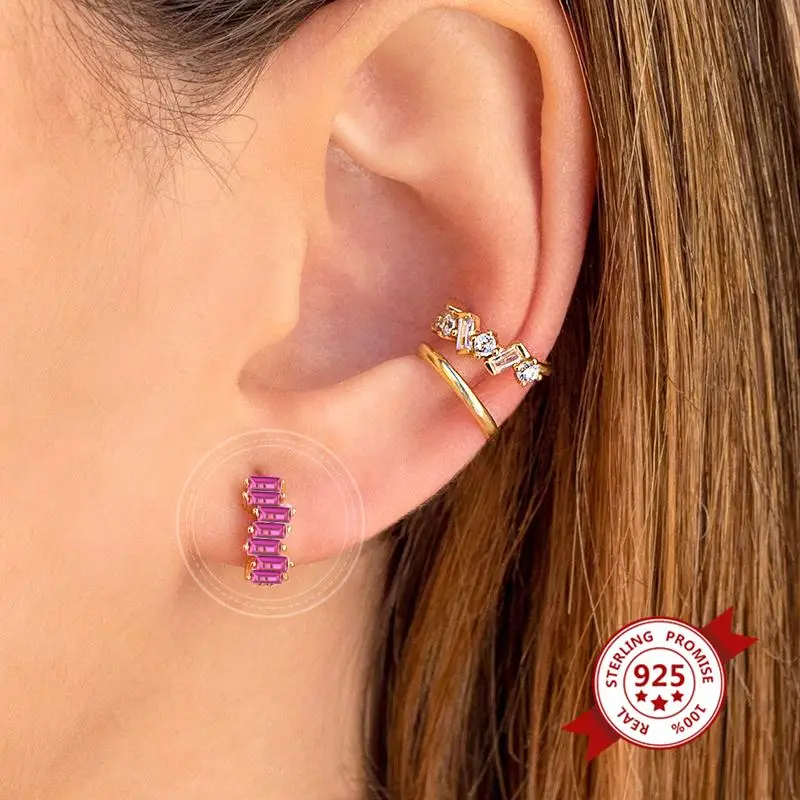 «CCFJOYA 925 Sterling Silver Rose red Zircon Small Hoop Earrings For Women European and American Mini Round Piercing Earring 2021» по лучшей цене на рынке! Всего за 3$ (285рублей)
