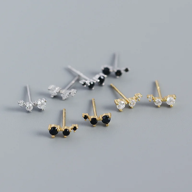 «CCFJOYAS 925 Sterling Silver Single Row Three Mini Zircons Stud Earrings Simple ins White/Black color Crystal CZ Studs Earrings» по лучшей цене на рынке! Всего за 4$ (380рублей)