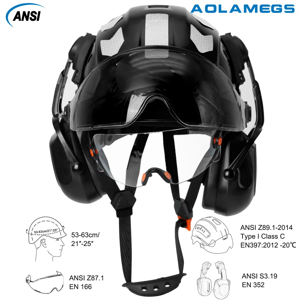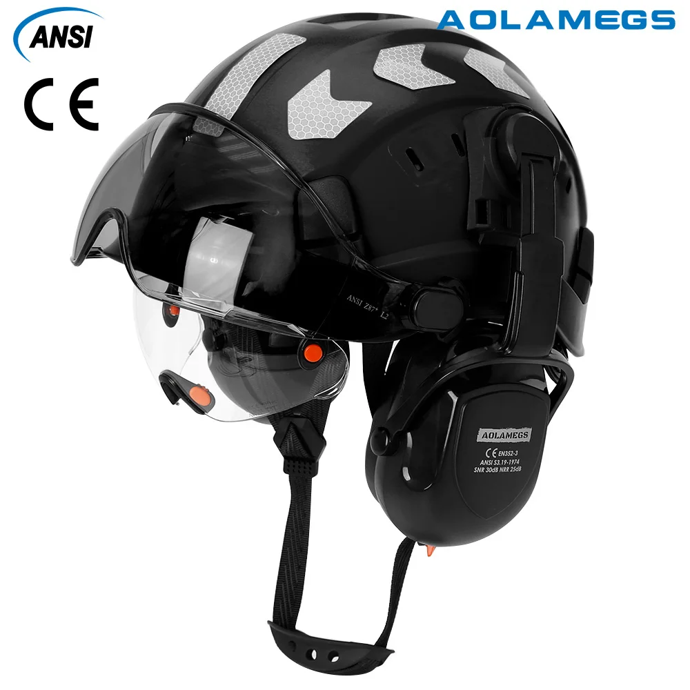 CE Construction Safety Helmet With Visor Reflective Stickers Built In Goggle Earmuffs ABS Industrial Hard Hat ANSI Riding Climb - Купить с бесплатной доставкой
