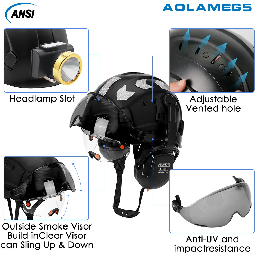 kDeOLSQmTЗдесь вы сможете купить CE Construction Safety Helmet With Visor Reflective Stickers Built In Goggle Earmuffs ABS Industrial Hard Hat ANSI Riding Climb с бесплатной доставкой до вашего почтового отделения.