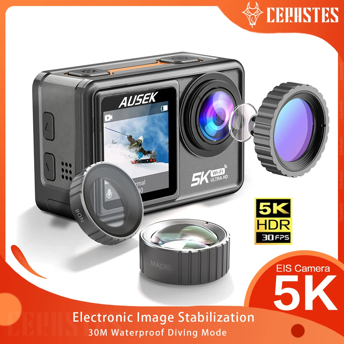 KKyoGNFCHHere you can buy CERASTES Action Camera 5K 4K 60FPS EIS Interchangeable Lens 48MP Zoom Electronic Stabilizer Camera WiFi Action Camera for Vlog with free delivery to your post office.