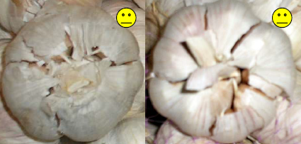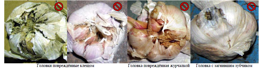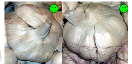 Луковицы должны быть неповреждённые, достаточно правильной формы. Дольки чесночных головок должны быть достаточно плотными. Могут допускаться небольшие разрывы внешней кожуры луковицы.