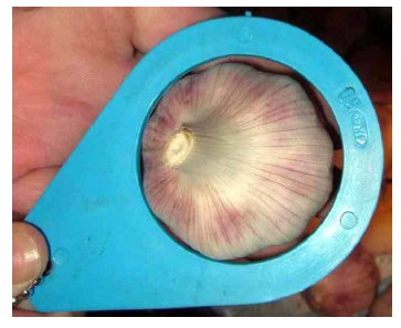 30 мм для чеснока первого и второго сорта (25 мм для отечественного чеснока)