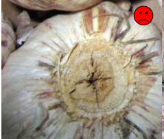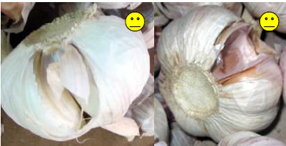 Разрывы внешней кожуры луковицы или ее частичное отсутствие, зарубцевавшиеся механические повреждения, небольшие следы побитости, неправильная форма, отсутствие не более трех долек (это означает и наличие не более 3 повреждённых или загнивших долек, которые должны быть отнесены к н/ст или отходу).