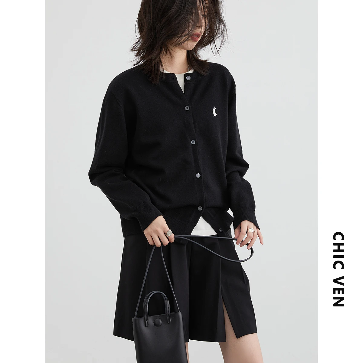 "CHIC VEN Women T-Shirts New Multi Color Option Simple Solid Rabbit Embroidery Knitted Cardigan Sweater Autumn Spring 2023" * Buy Now With Free Shipping Just For $35