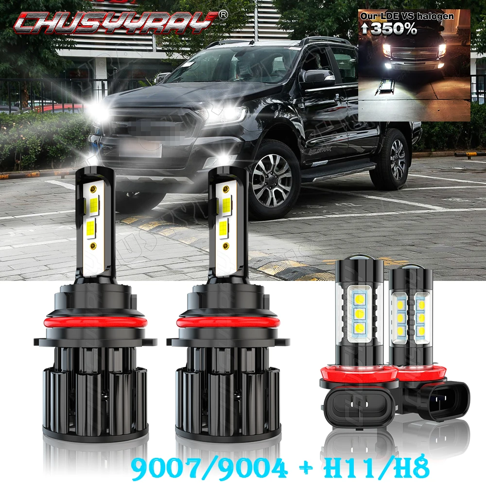 CHUSYYRAY Compatible For Ford Ranger 2005-2007 4X 9007 High/Low Beam LED Headlight H11 Fog Light Bulbs Kit Car accsesories - Купить с бесплатной доставкой