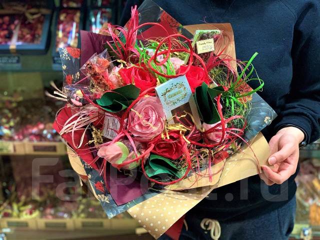 17 .03 .2018 - Сладкий букет из зефира, печенья, мармелада