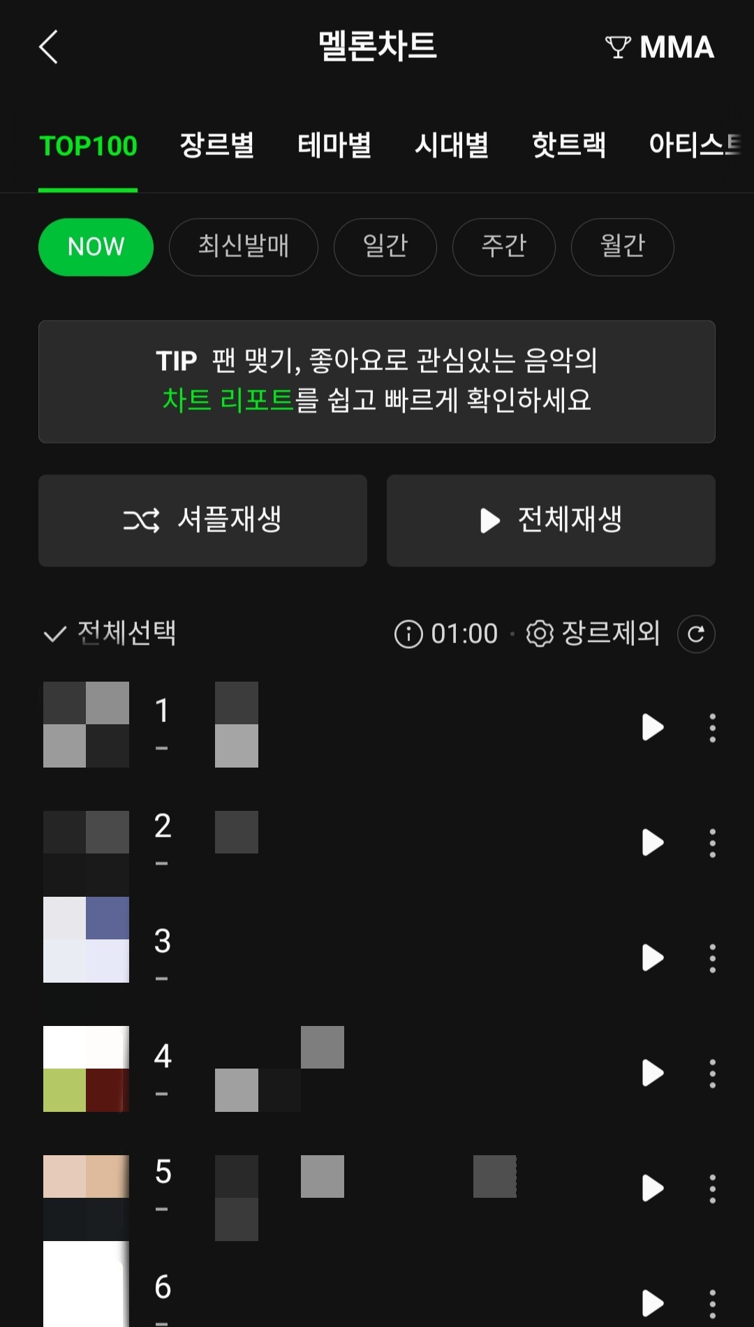 Заморозка чарта ТОР100 с 01:00 до 08:00 по Корее.