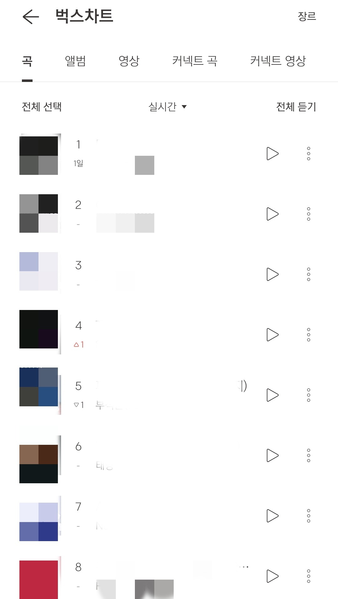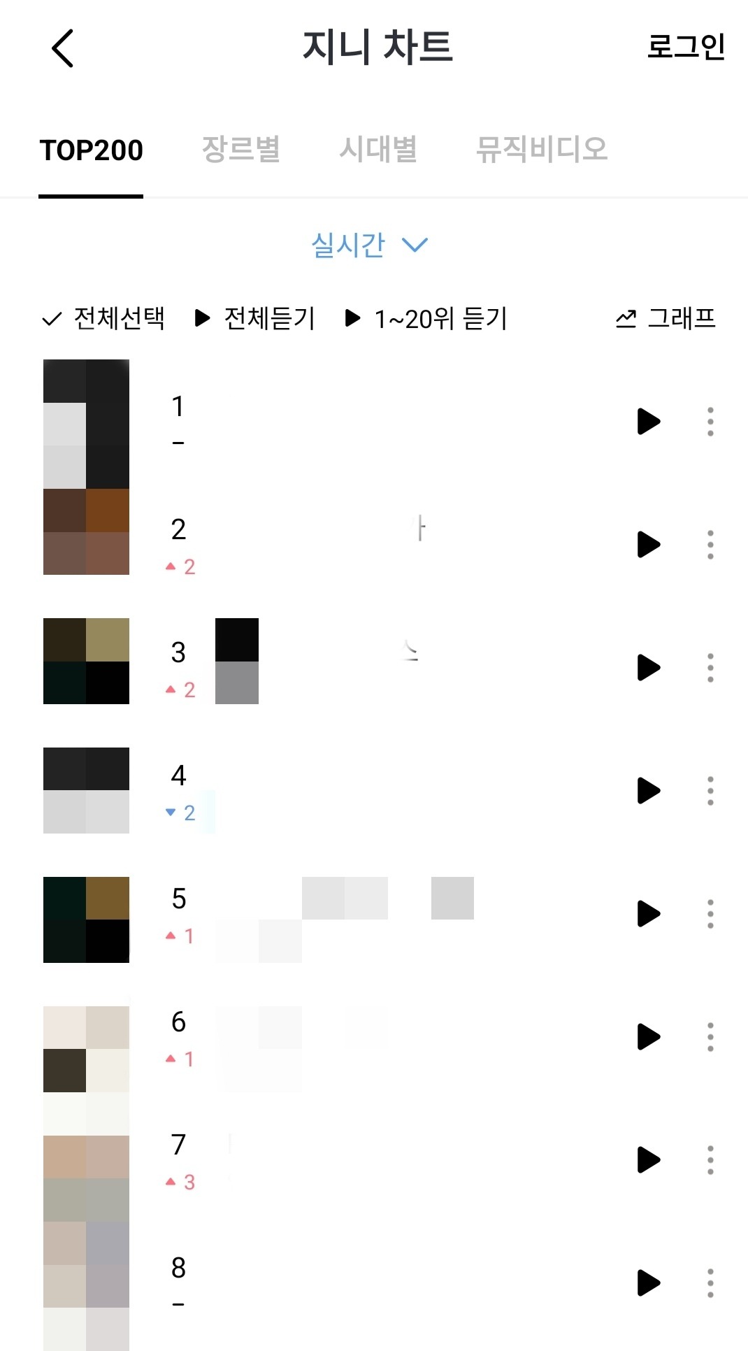 В Melon также существуют жанровые чарты и чарты по исполнителям.